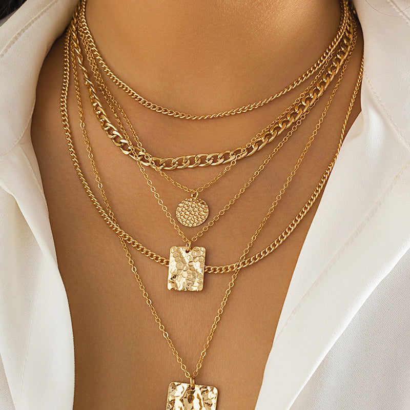 Collar de Colgante Geométrico de Cadena de Metal