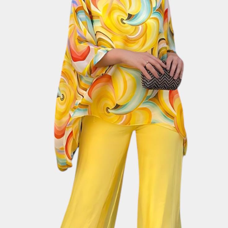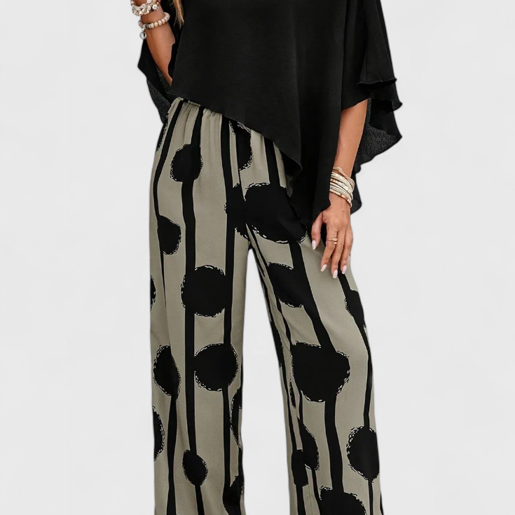 Aleida Conjunto Asimétrico con Top y Pantalón Estampado