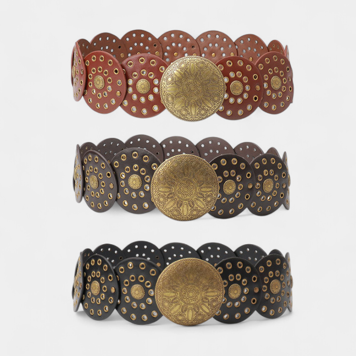 Alicia Cinturón Cowboy Vintage con Hebilla Circular Decorativa