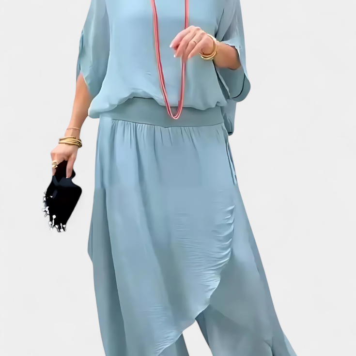 Maravilla Conjunto Fluido de Dos Piezas con Top Holgado y Falda Asimétrica