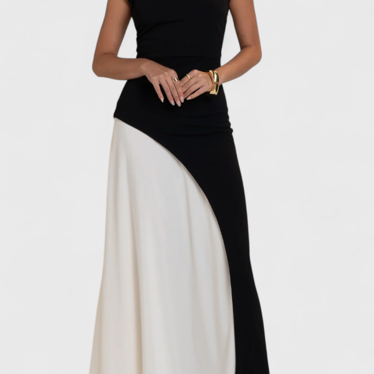 Mallory Vestido Midi Bicolor de Corte Recto y Silueta Definida