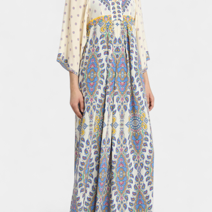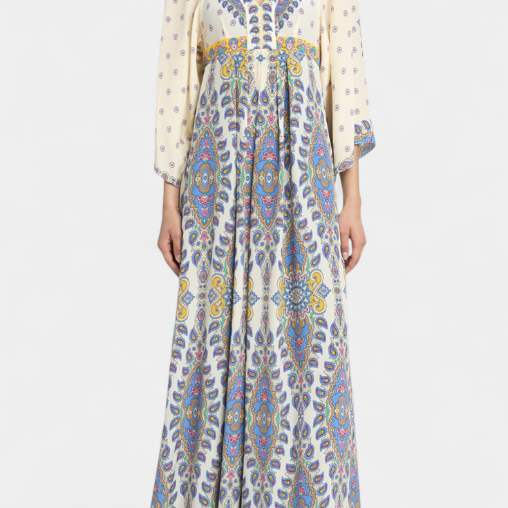 Novia Vestido Largo con Escote en V y Estampado Paisley Elegante