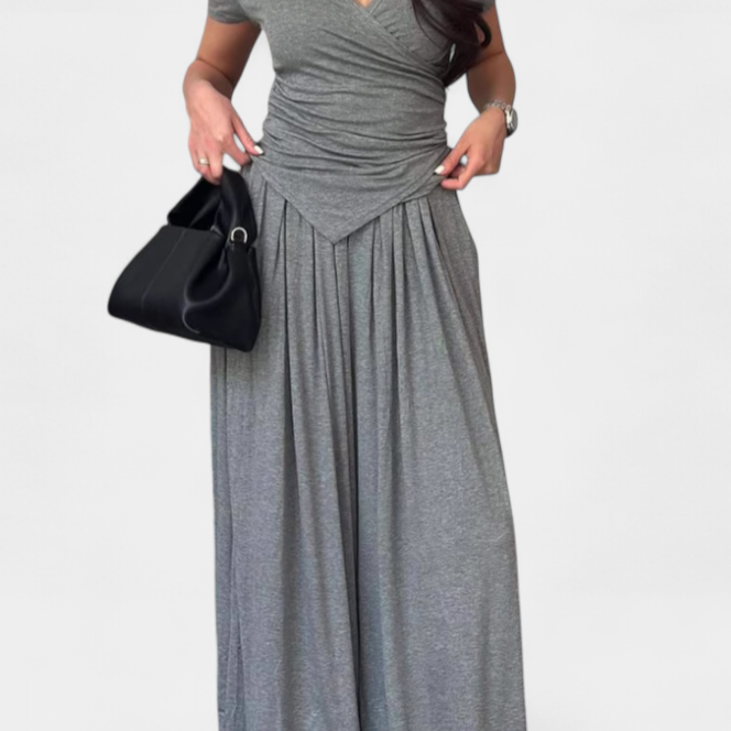 Ruslana Conjunto Cómodo de Dos Piezas con Escote en V Cruzado