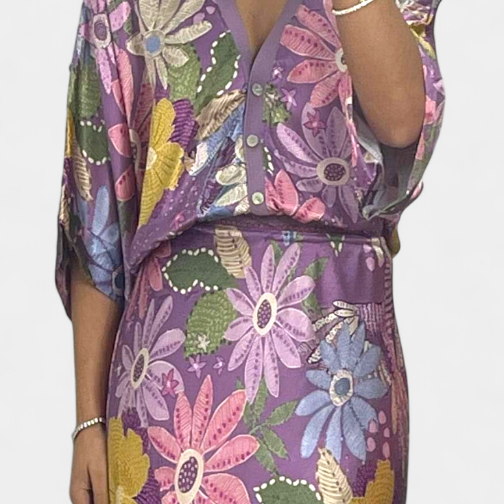 Sima Vestido Cruzado Estampado con Escote en V y Mangas Acampanadas