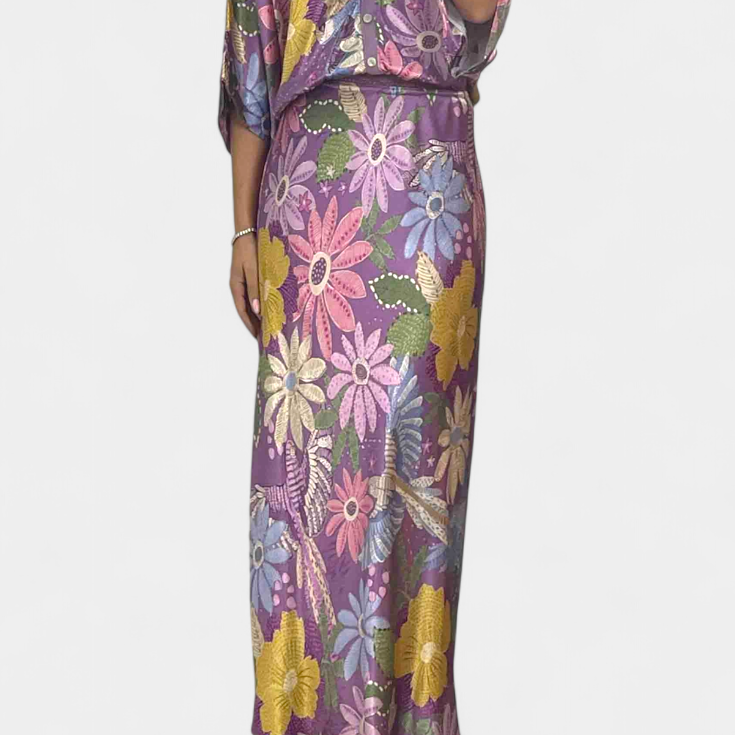 Shae Conjunto Suave de Blusa y Falda de Cola de Pez Floral