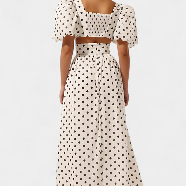 Sherine Conjunto de Falda y Top de Lunares con Mangas Abullonadas
