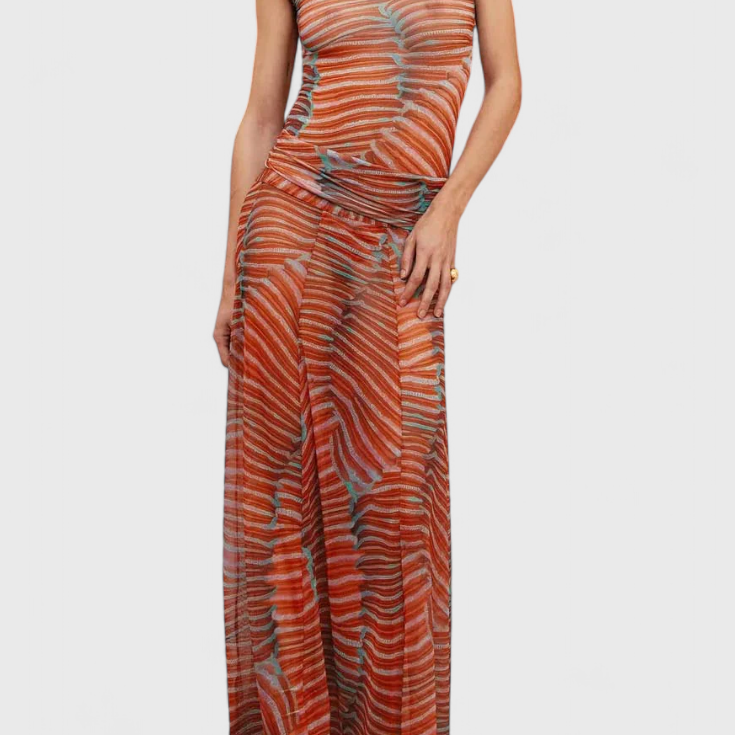 Silvina Conjunto Retro de Malla con Estampado Wave y Corte Fluido