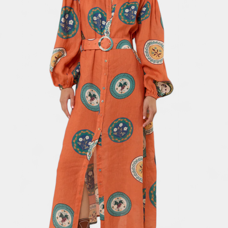 Sibley Vestido Maxi de Lino con Estampado Exclusivo y Cinturón