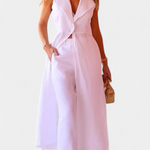 El conjunto Eider redefine la elegancia veraniega con un diseño minimalista y sofisticado. El chaleco largo sin mangas, de corte sastre y cierre frontal, se complementa con un pantalón de pierna recta de caída suave. Su silueta monocromática estiliza sin esfuerzo, ideal para días cálidos con intención refinada.