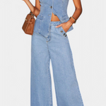 Ludovica Conjunto de Denim con Chaleco Ajustado y Jeans de Pierna Ancha