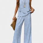 Martina Conjunto Boho Elegante Sin Mangas con Pantalón Recto Estampado