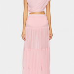 Romántica y ligera, diseñada para moverse con gracia en cada paso. La falda Nalia combina capas fruncidas de chifón con una cintura elástica que se adapta cómodamente. Su caída fluida y el short interior desmontable la hacen perfecta para lucir con libertad y confianza en días luminosos.