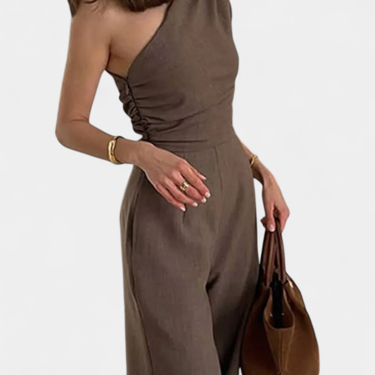 Ariella Mono Casual de Pierna Ancha con Solapa y Cintura Alta