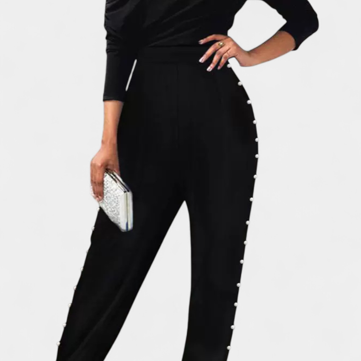 Brina Mono con Hombro Descubierto y Detalles de Perlas