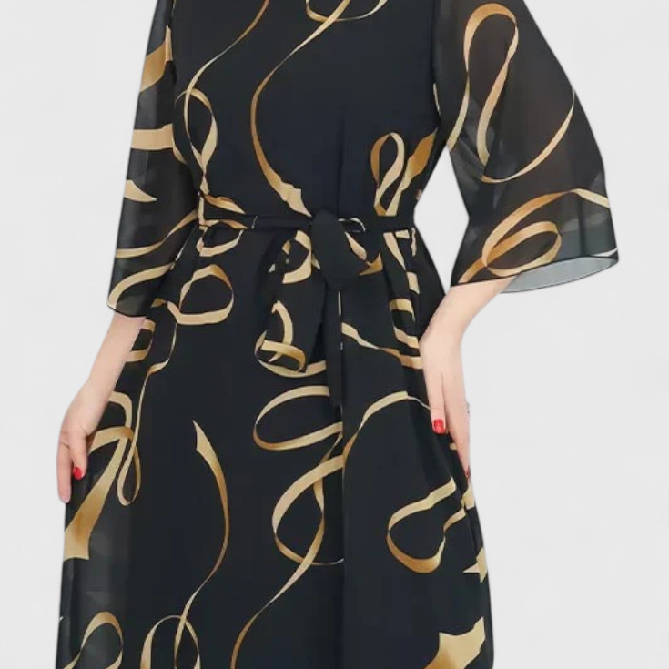 Amelie Vestido Midi Estampado con Cinturón y Corte Versátil