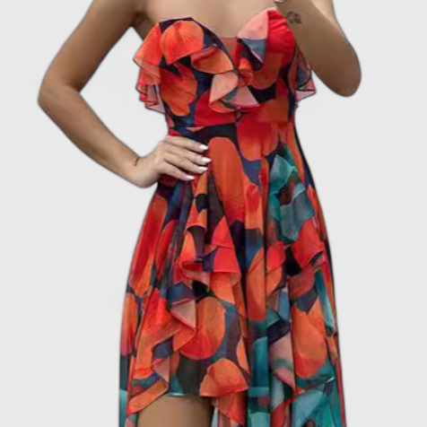 June Vestido de Volantes con Escote Corazón y Silueta en Capas
