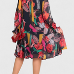 Annegret Vestido Midi Floral con Mangas Largas y Corte Fluido