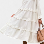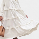 Un básico reinventado con un aire femenino y actual. El vestido Jada, confeccionado en suave tejido tipo sudadera, combina confort y estilo con un diseño relajado que fluye con naturalidad. Los volantes aportan un toque dinámico y refinado, elevando la pieza a una propuesta casual con carácter. Perfecto para looks de día donde la comodidad no está reñida con la elegancia.