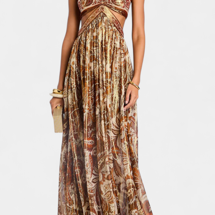 Tasha Vestido Maxi Halter con Espalda Descubierta y Detalles Huecos