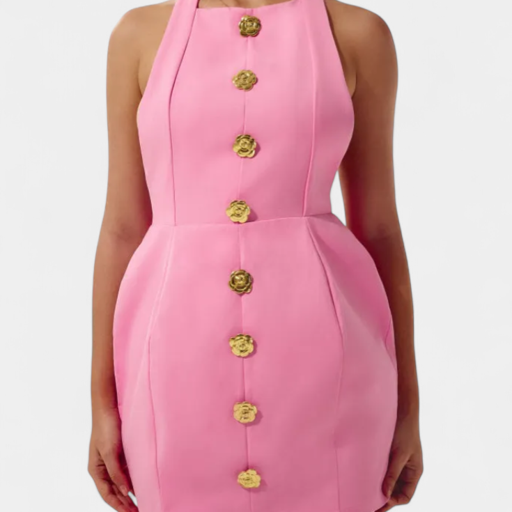 Yvonne Vestido Mini Escote Halter con Espalda Abierta y Detalle Floral