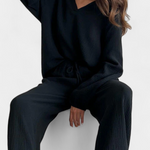 • Diseño: Escote en V, manga larga, pantalón fluido