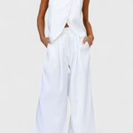 Bernadina Conjunto de Lino con Top de Abertura Frontal y Pantalón de Pierna Ancha