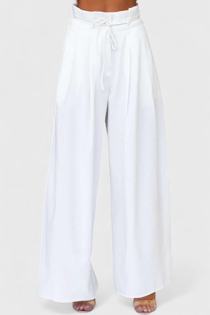 • Pantalón de cintura alta con lazo que define la silueta con elegancia