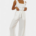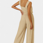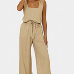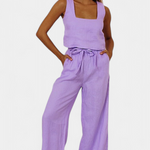 Pascuala Conjunto de Lino de Dos Piezas con Blusa sin Mangas y Pantalón Fluido