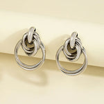 Diseño moderno con inspiración escultórica. Estos pendientes de aros entrelazados en acabado dorado elevan cualquier look con un toque audaz y sofisticado.