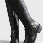 Diseño atemporal con carácter funcional. Las botas Sienna destacan por su silueta clásica hasta la rodilla, confeccionadas en cuero sintético duradero con detalles refinados como la hebilla lateral y la cremallera interna. Son la combinación perfecta entre elegancia práctica y comodidad para el día a día.