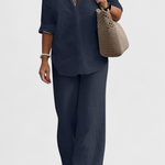 Simplicidad refinada con una silueta que respira frescura y naturalidad. El conjunto Skye fusiona una camisa de botones holgada con pantalones de cintura elástica, ambos confeccionados en una mezcla ligera de algodón y lino. Una combinación versátil que equilibra confort, estilo y funcionalidad para tu día a día.