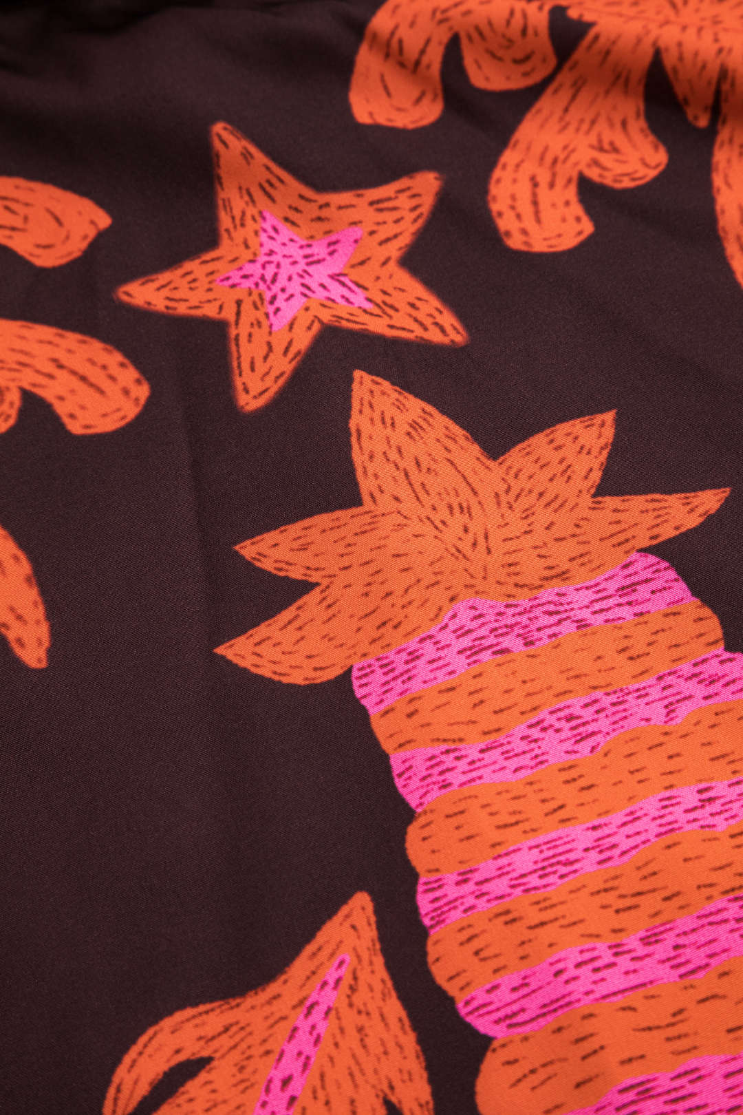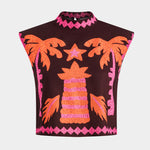 • Bordados en tonos vivos con palmeras, estrellas y aves tropicales